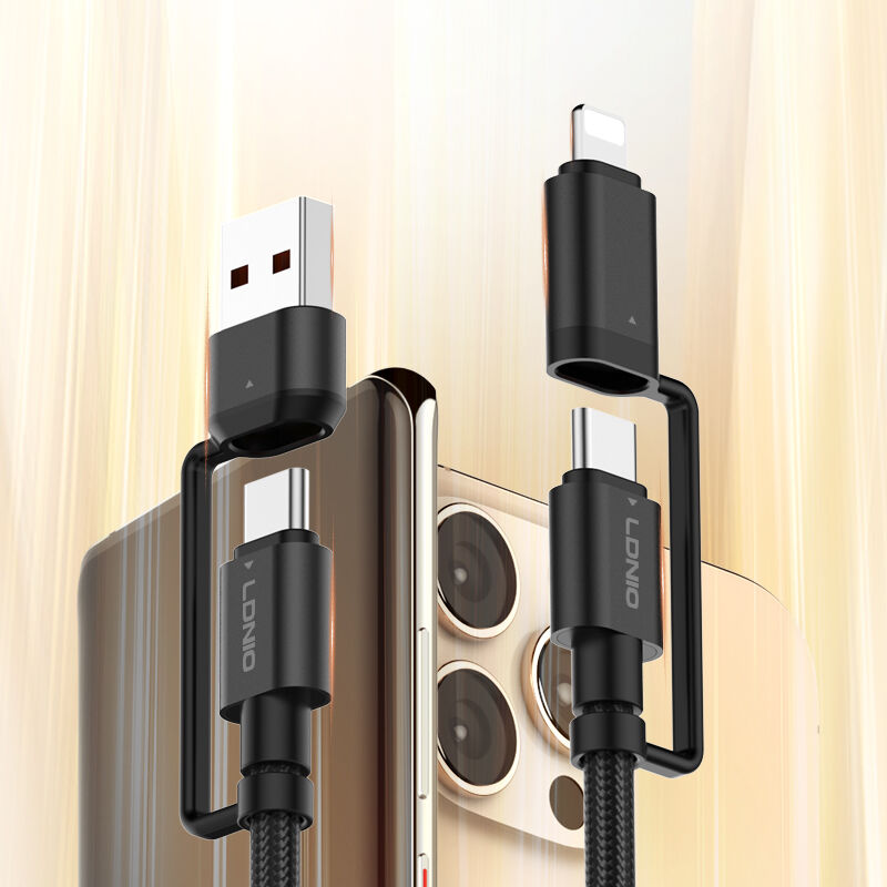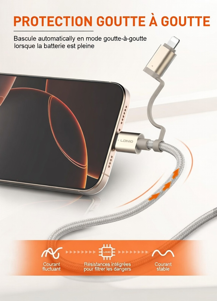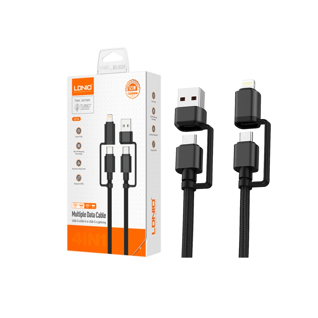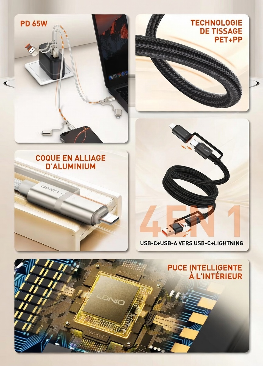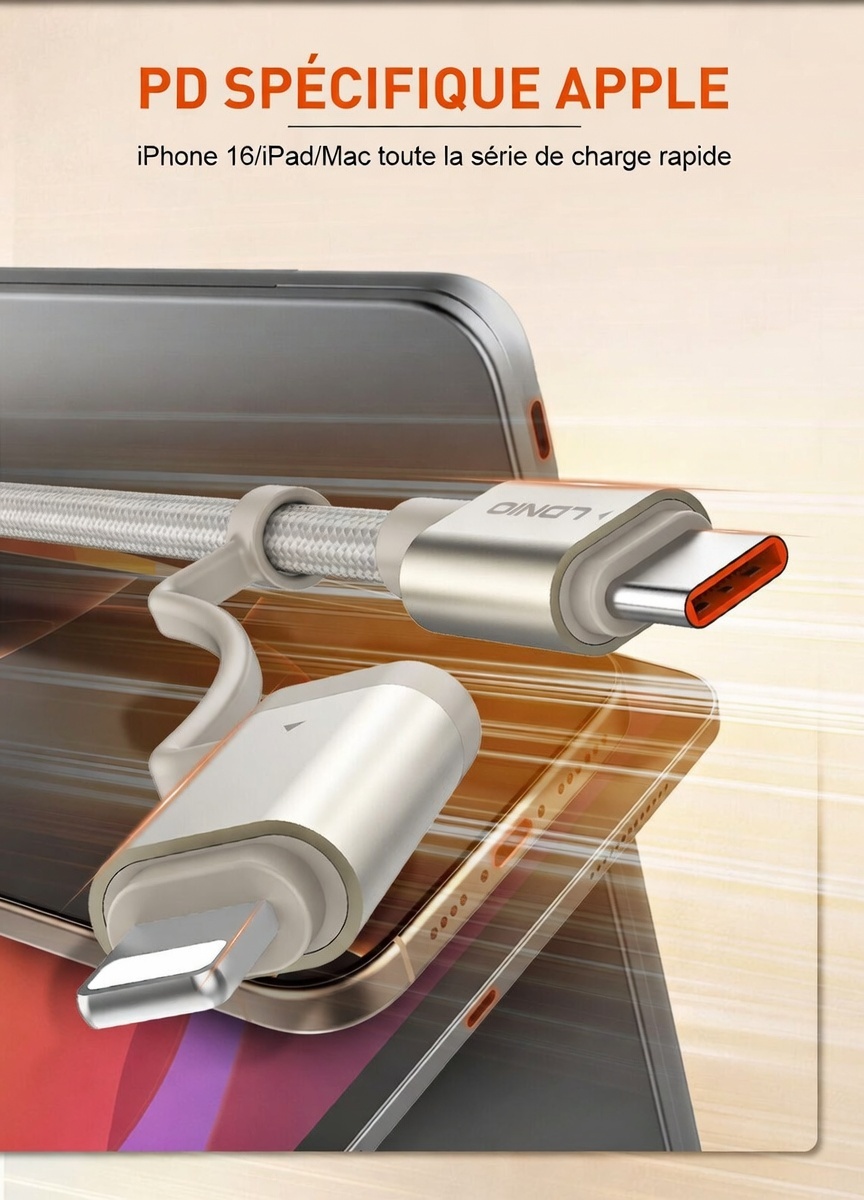 Câble de charge rapide LC16, Adaptateur USB-C + USB-A vers USB-C + Lightning