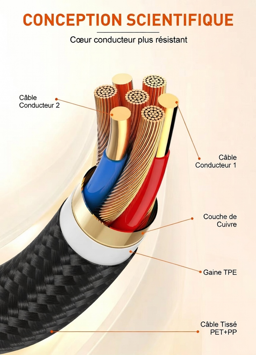 4. Câble à quatre conducteurs en cuivre étamé sans oxygène : 90 conducteurs principaux, 70 conducteurs de dérivation
