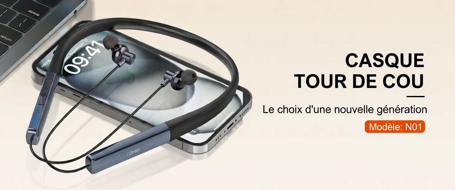 Casque stéréo sans fil LDNIO N01 de haute qualité avec microphone intégré et tour de cou, idéal pour les jeux vidéo.