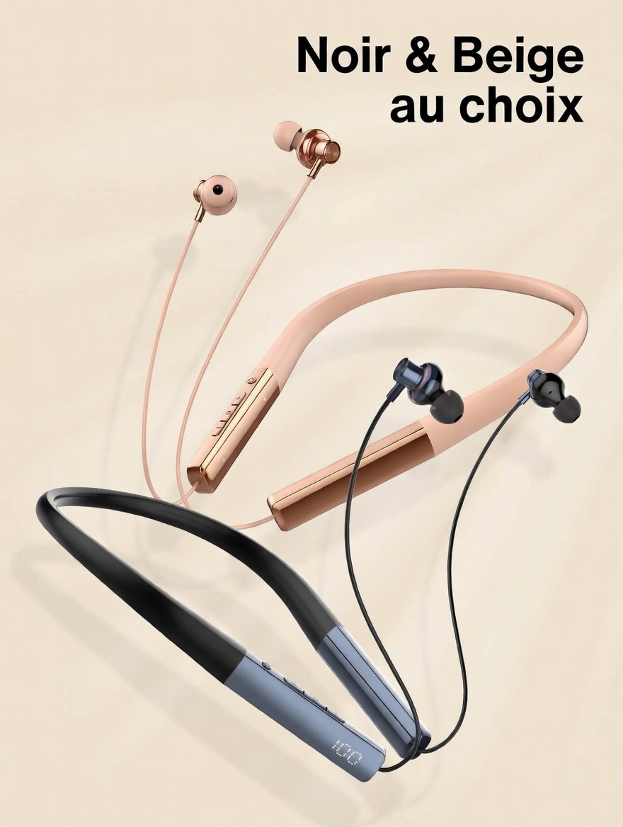 Casque stéréo sans fil, tour de cou, Bluetooth N01 NOIR