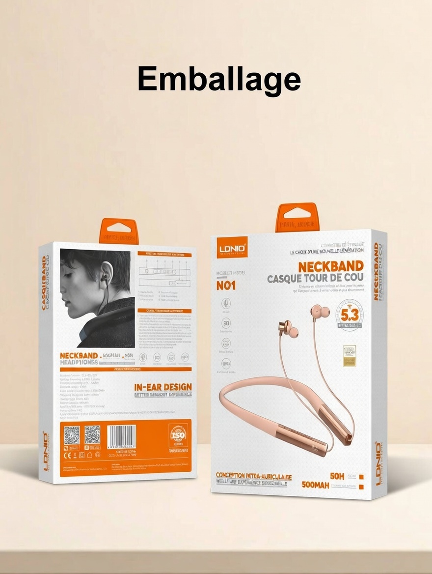 Casque stéréo sans fil, tour de cou, Bluetooth N01 OR