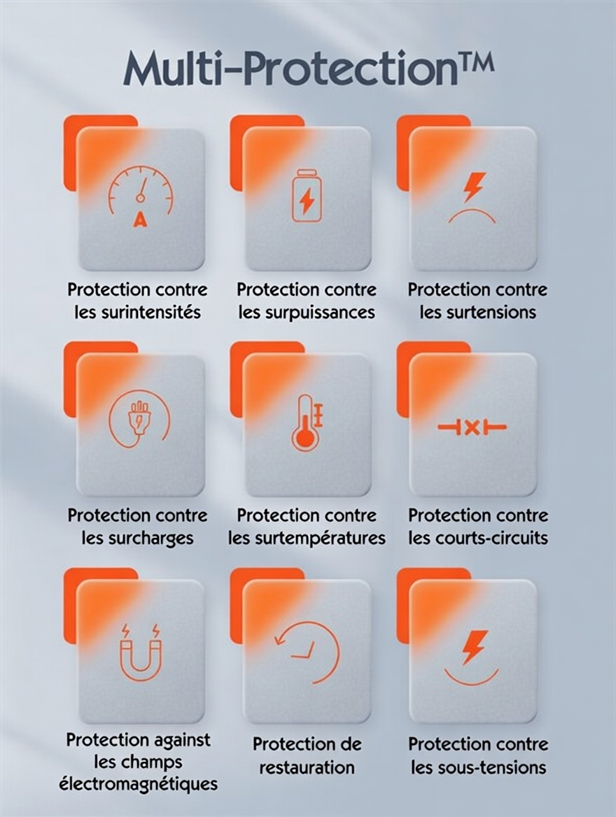 Sortie QC3.0 : 5 V – 3 A, 9 V – 2 A, 12 V – 1,5 A (18 W)