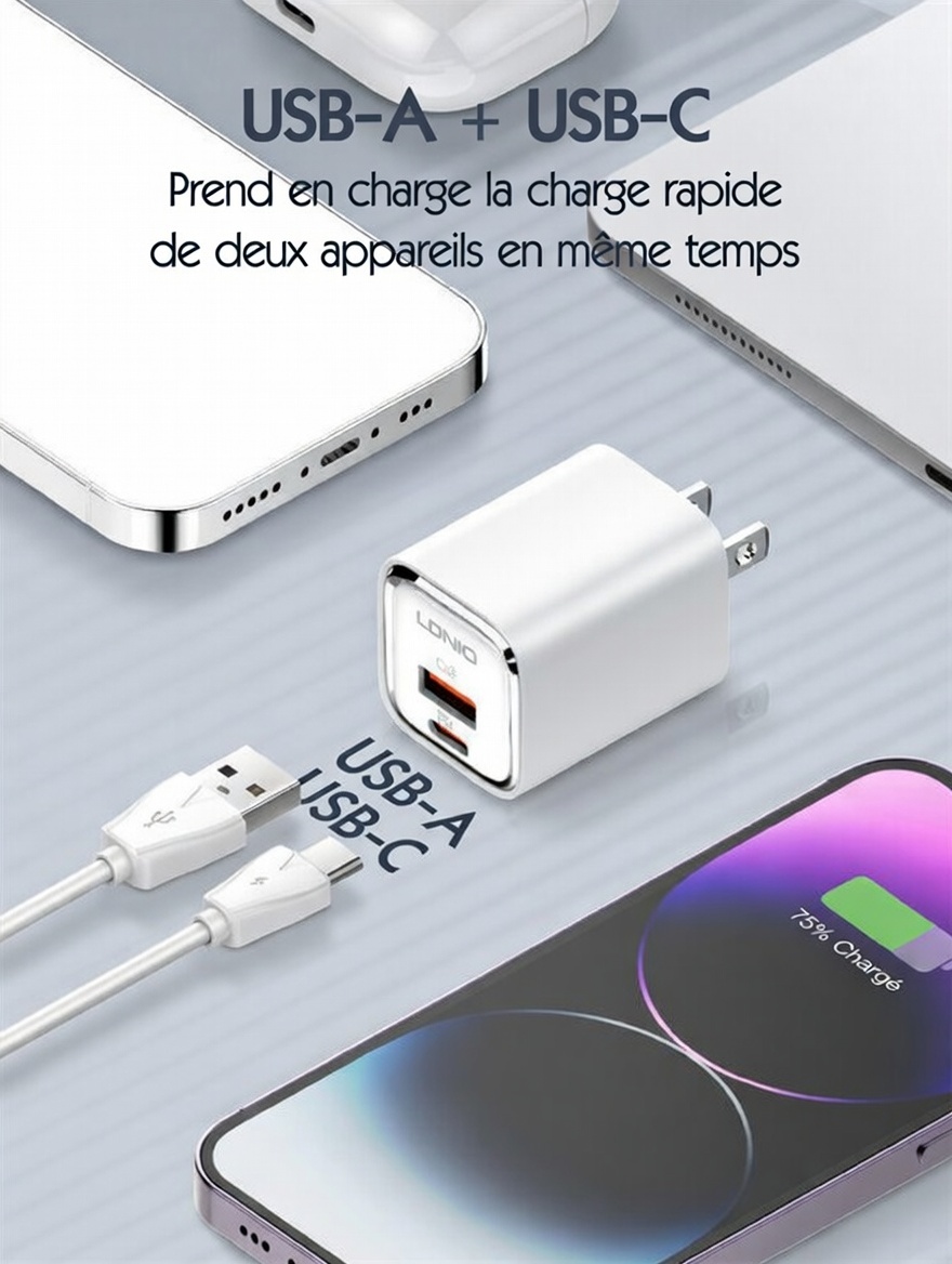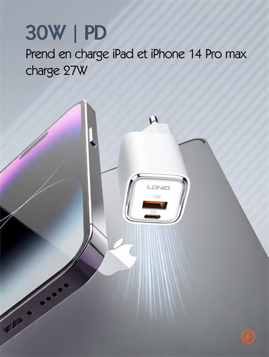 Chargeur rapide PD/QC3.0 30 W