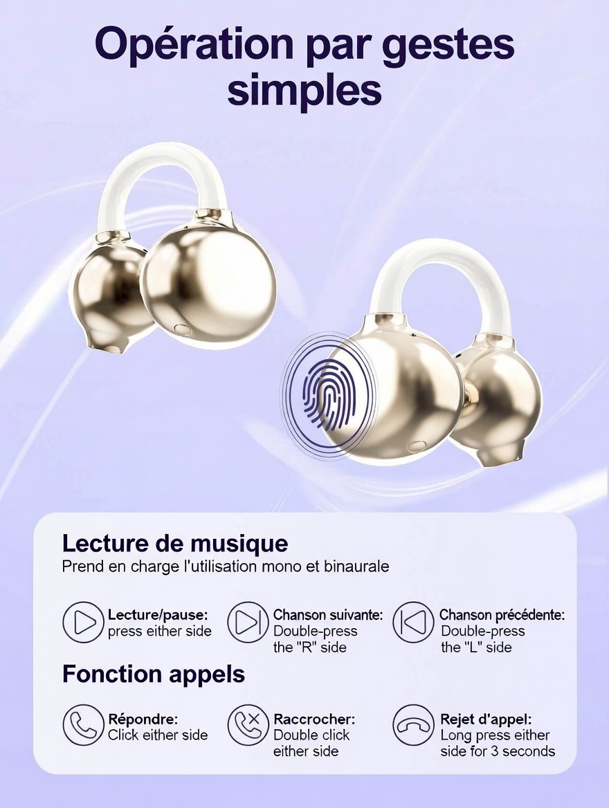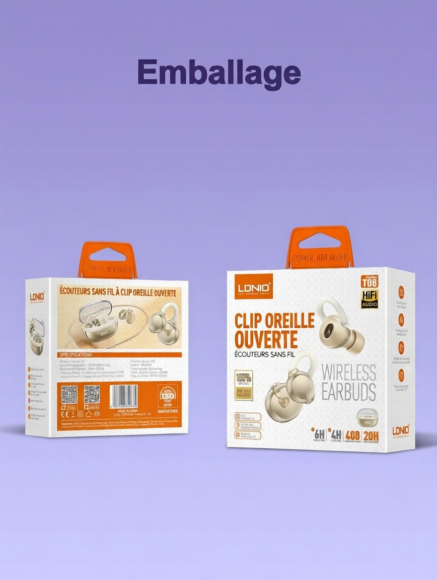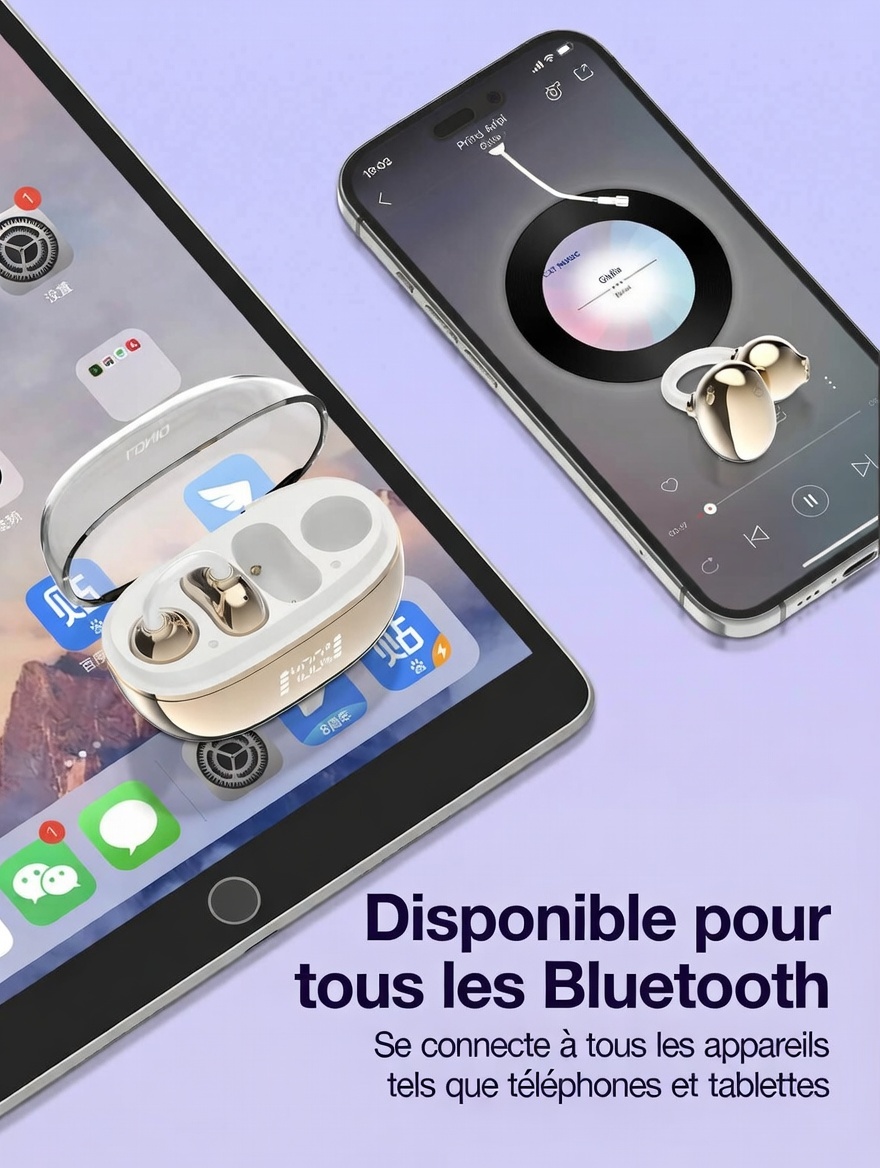 Écouteurs intra-auriculaires stéréo sans fil Bluetooth ouverts T08 OR