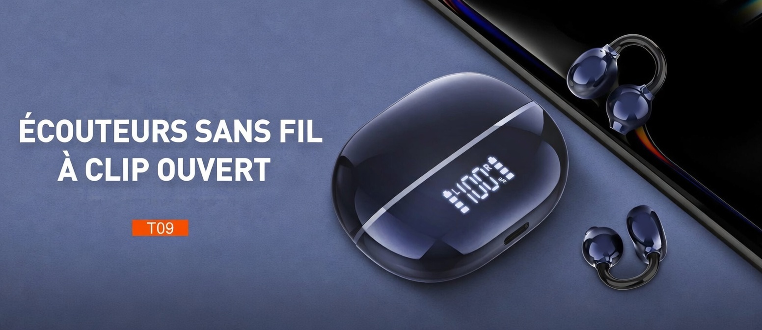 Écouteurs intra-auriculaires stéréo sans fil Bluetooth ouverts T09 BLANC