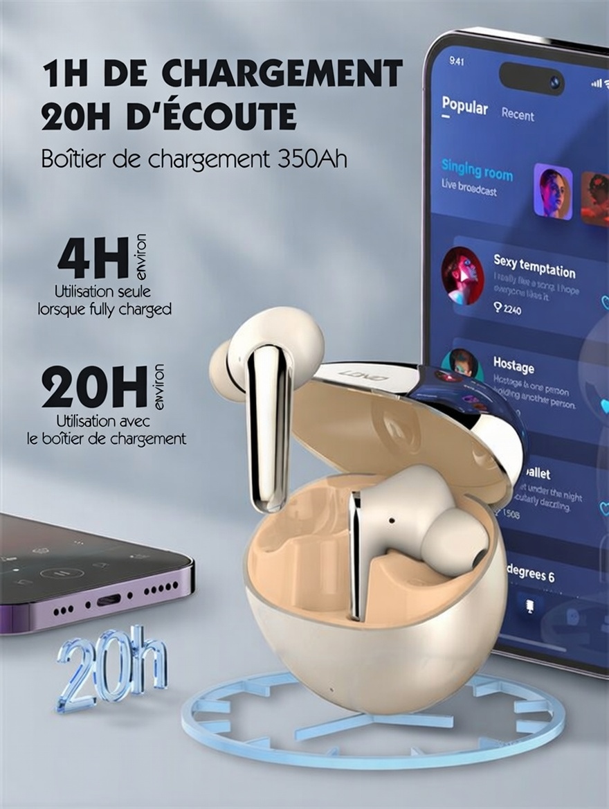 LDNIO T01, produits populaires 2023 : écouteurs intra-auriculaires stéréo sans fil Bluetooth, étanches, petits et économiques, personnalisables.