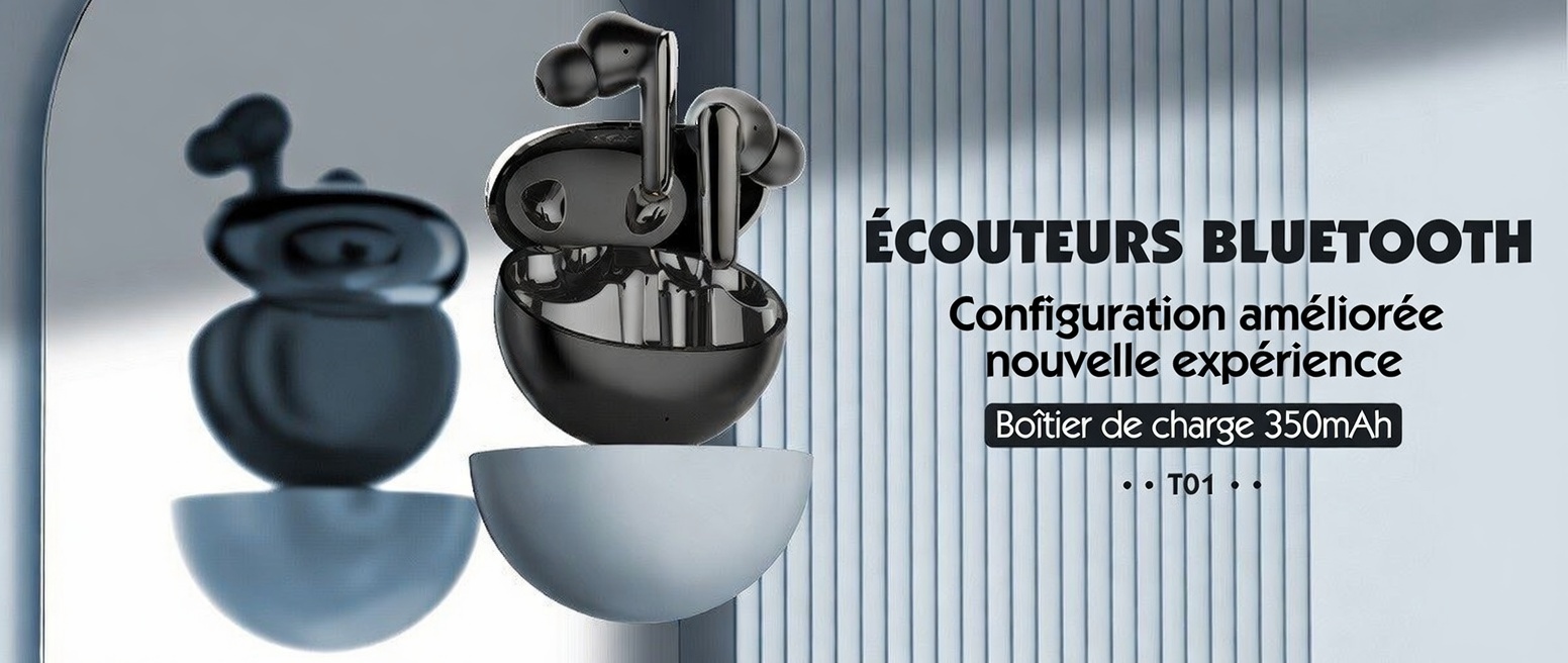 Écouteurs intra-auriculaires stéréo sans fil Bluetooth T01