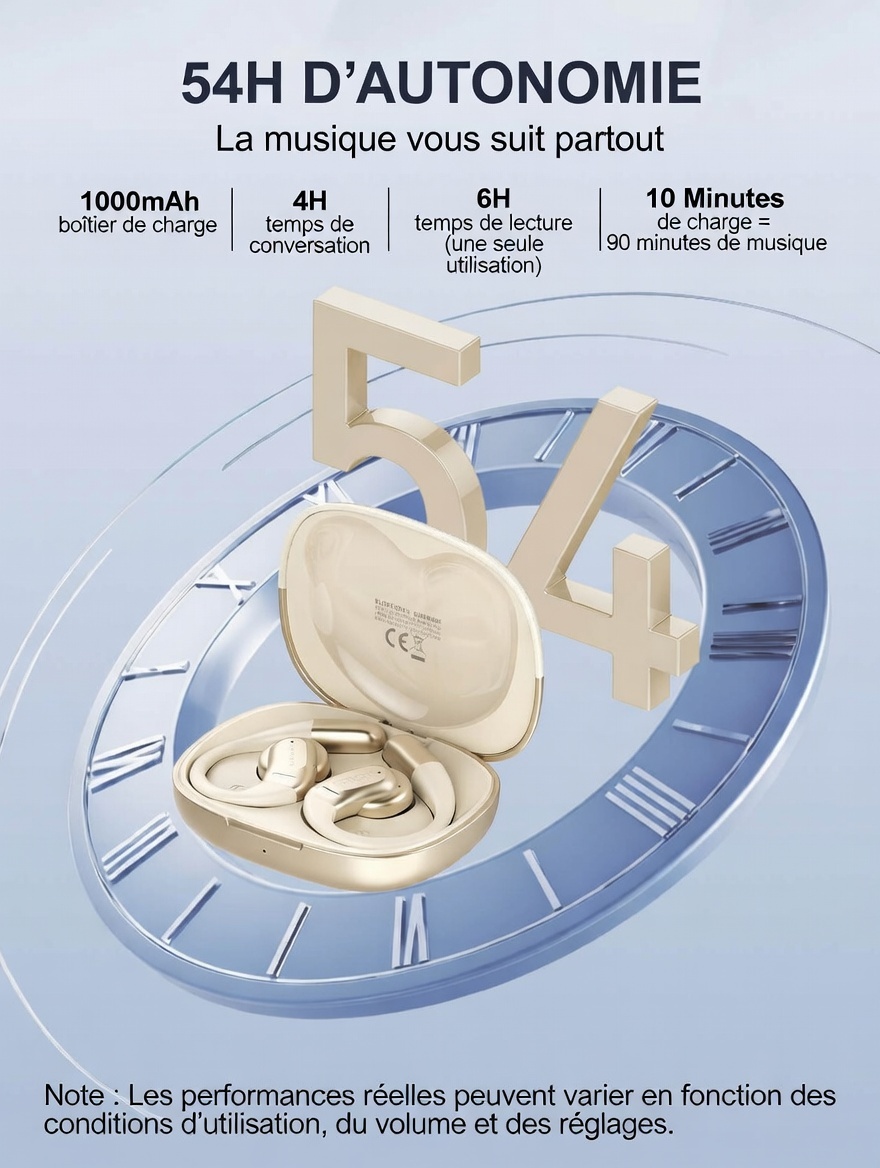 Capacité de la batterie des écouteurs : 3,7 V/50 mAh