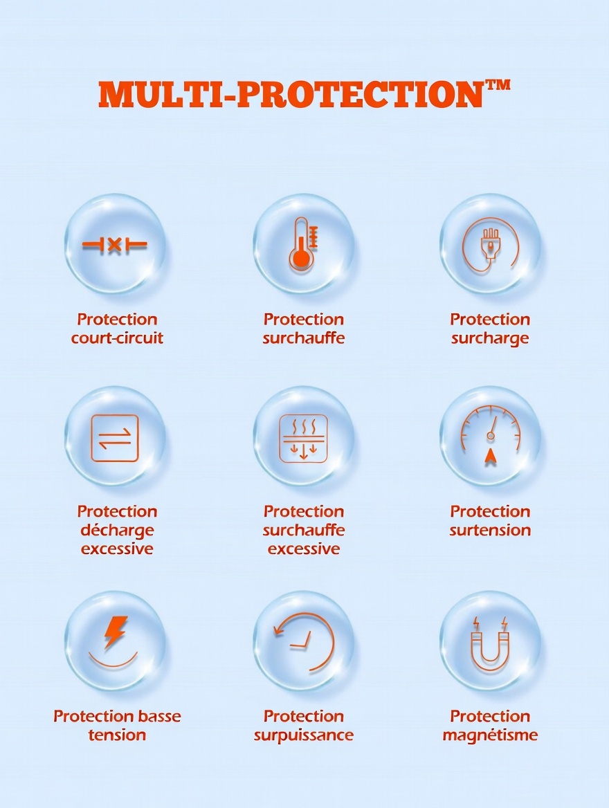 Sortie USB-A1 : 4,5 V/5 A (SCP), 5 V/4,5 A (SCP), 9 V/2 A, 12 V/1,5 A (22,5 W)