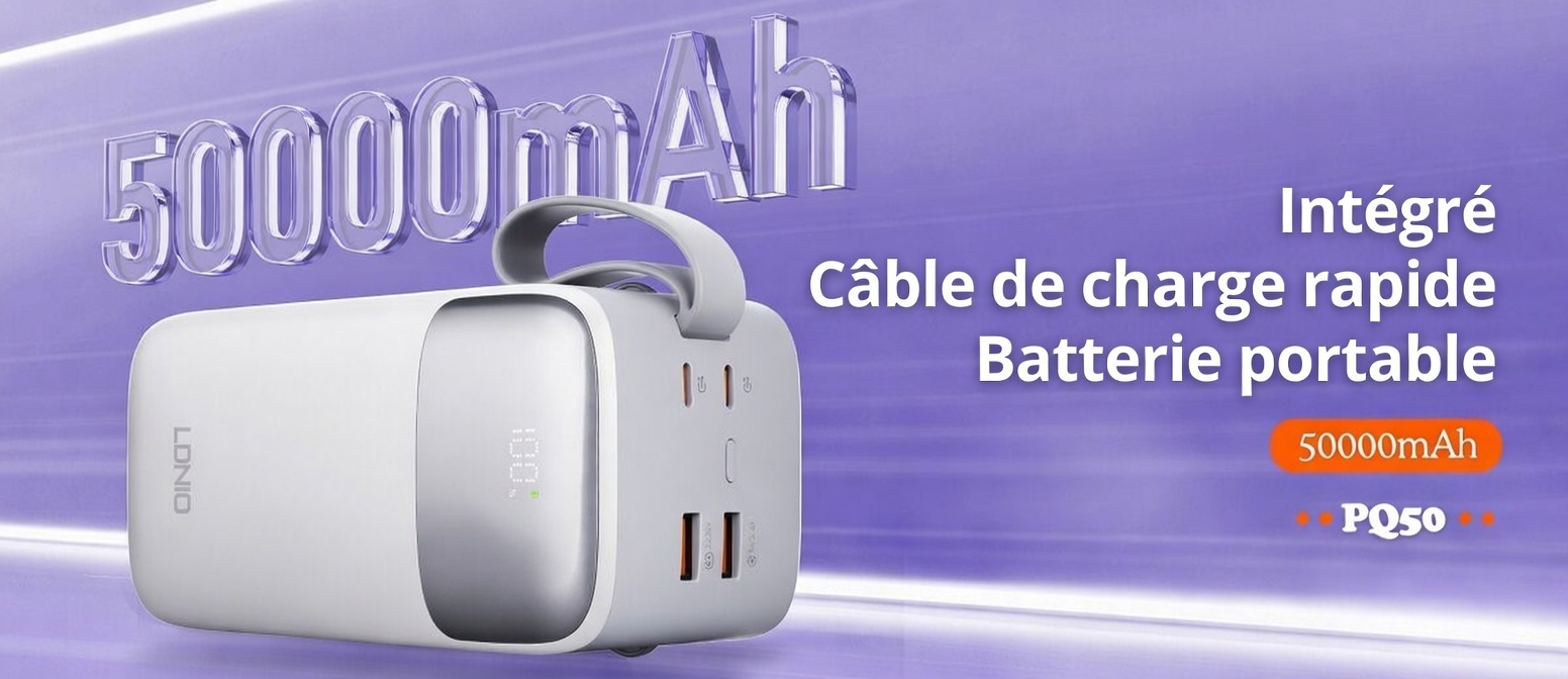 Power Bank PQ50, 50 000 mAh, charge rapide 22,5 W